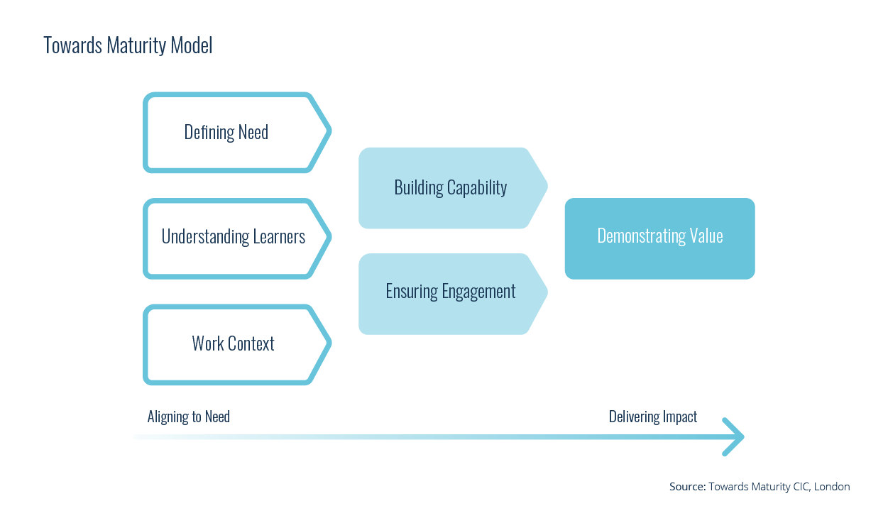 Here is where we can enlist the help of The Towards Maturity Model™, a highly regarded benchmarking framework, drawing from over 4,700 learners and 600 L&D leaders worldwide. This model shows the six pillars followed by high performing learning organisations.