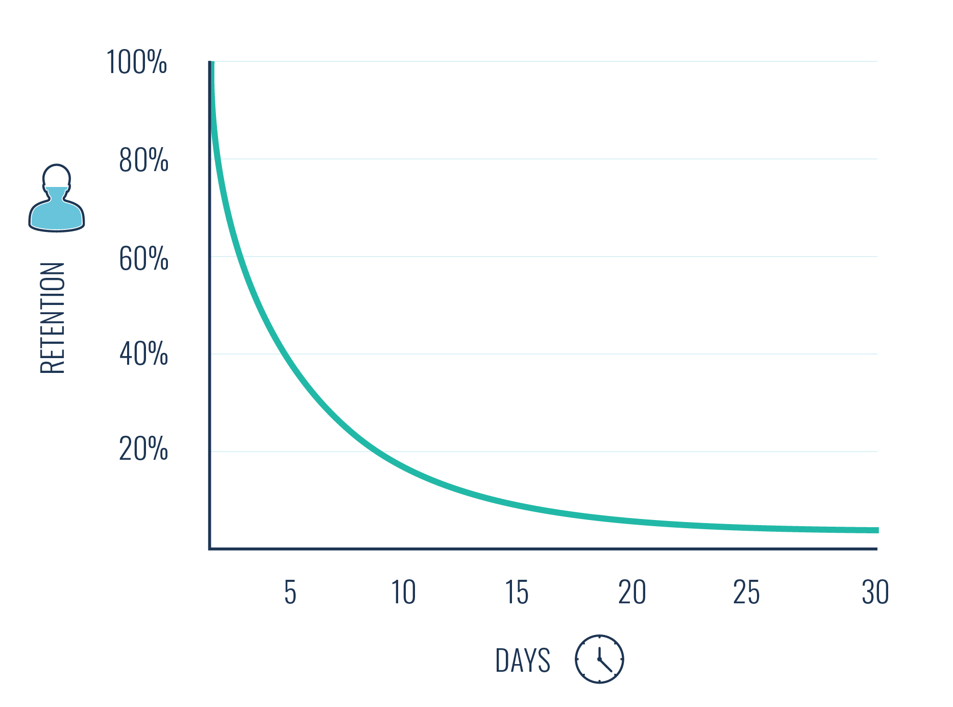 In a learning context, the forgetting curve shows that learners will forget an average of 90% of new information within the first seven days.