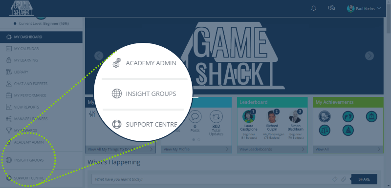One of the social features on the Academy is Insight Groups. The L&D team can easily create specific discussion areas on the platform that let their employees focus on the things that interest them. Here’s how Insight Groups help identify the real experts in Game Shack:
