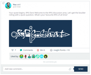 It would be very lucky if spontaneous conversations broke out on a brand new Insight Group, but typically, potential contributors need an extra push. The best way to do this is to ask a question like “what’s your favourite RPG?”. This is a great way to get people excited about the topic and relate it to their own experience. Later on, the conversation can be steered to more specific topics like upcoming releases. With an active discussion group, all the admin really needs to do is to plant the seed with a simple post. It could simply be a link to a trailer for a new game. After that, the contributors themselves create informal learning content around it.