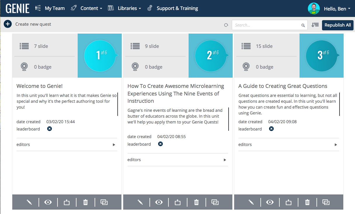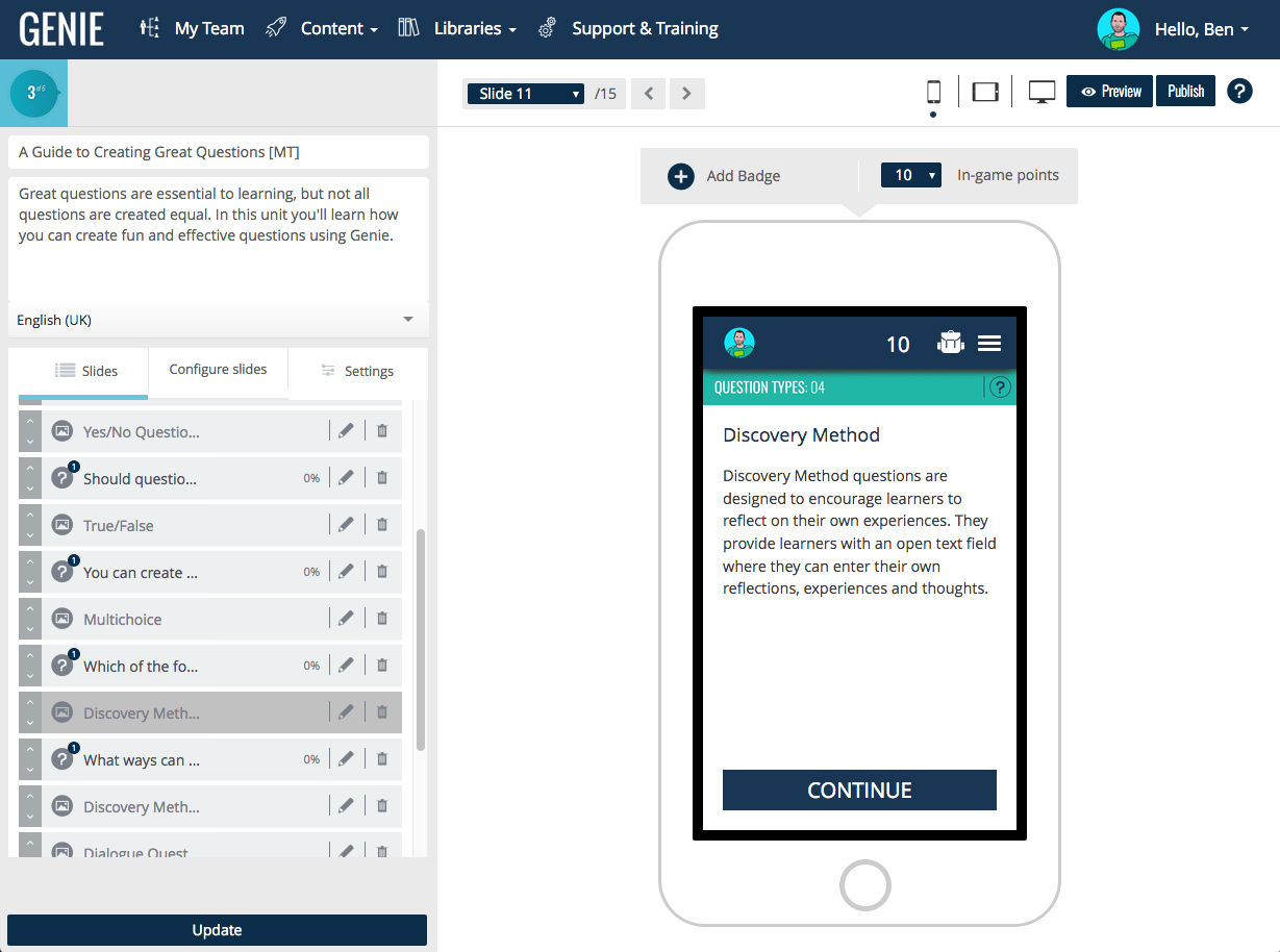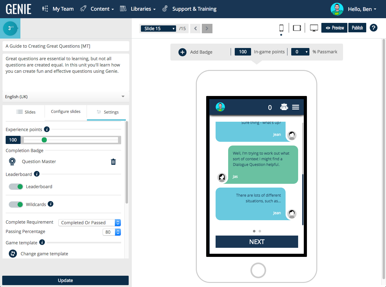 Start a learning revolution with Growth Engineering’s Authoring Tool – a game-based authoring tool, leaders in gamified learning technologies. Assemble your team, upload assets, select a game and build something awesome that really engages your learners.