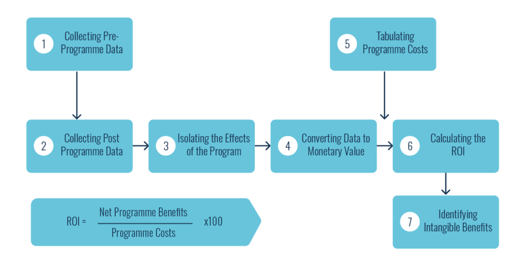 Phillips ROI Model only calculates ROI after the training programme has been delivered. As such, if you calculate that your training initiative costs more to deliver than the value it has provided, it’s too late to make any changes.