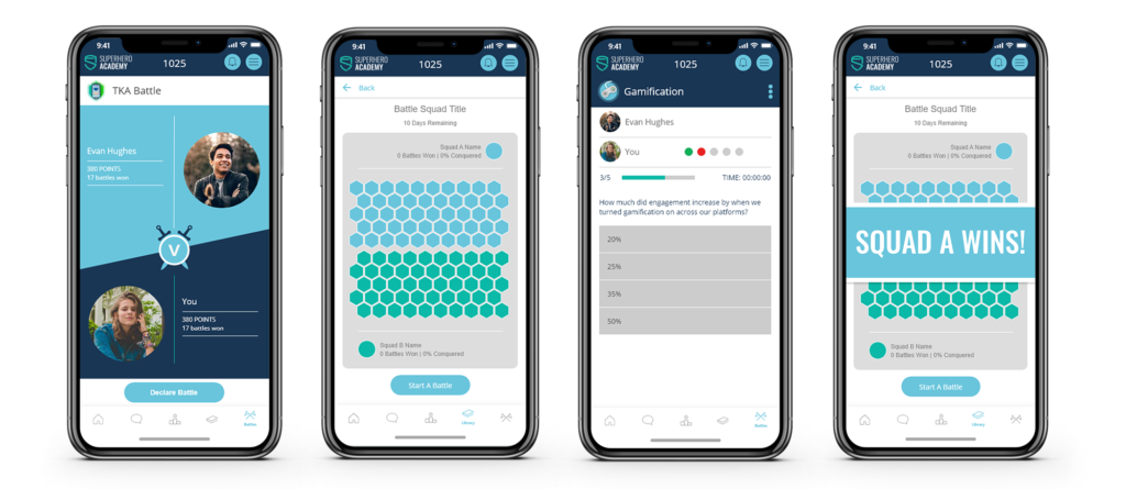 Divide your learners into Squads based on teams, departments, branches, countries or any other criteria of your choice. Your learners will then duke it out in the usual way. Except this time, they’ll be recording wins and losses for their Squad.